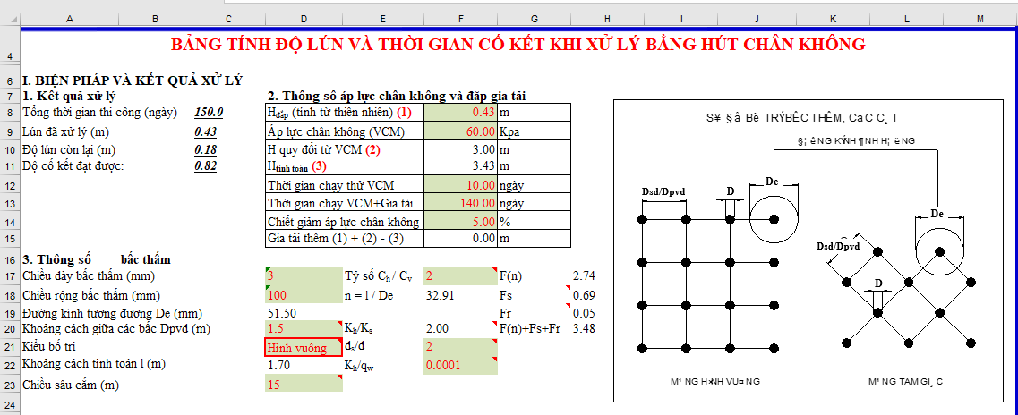 Bài viết này sẽ hướng dẫn chi tiết cách sử dụng bảng tính xử lý đất yếu bằng bấc thấm kết hợp với hút chân không trên xulydatyeu.com.