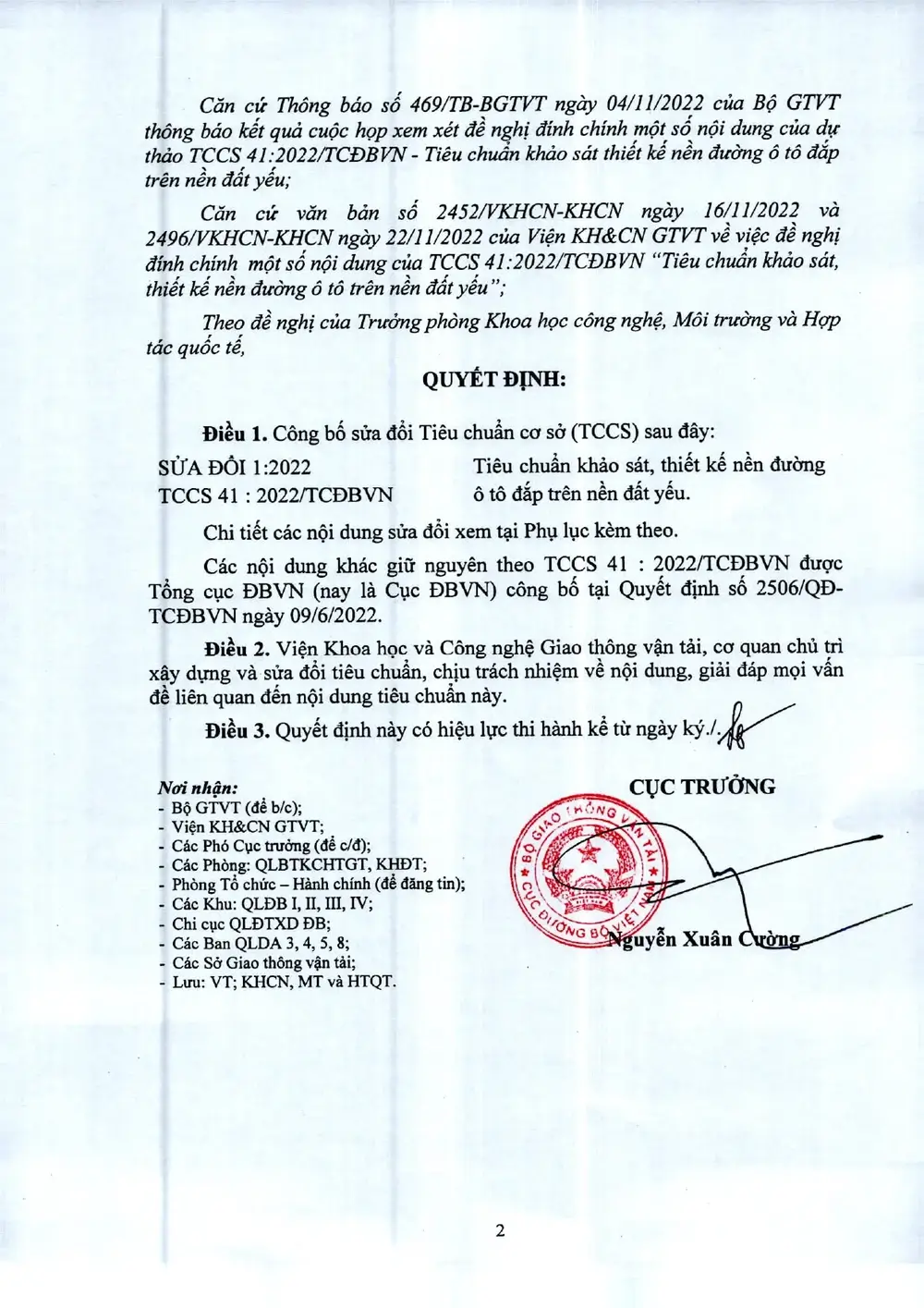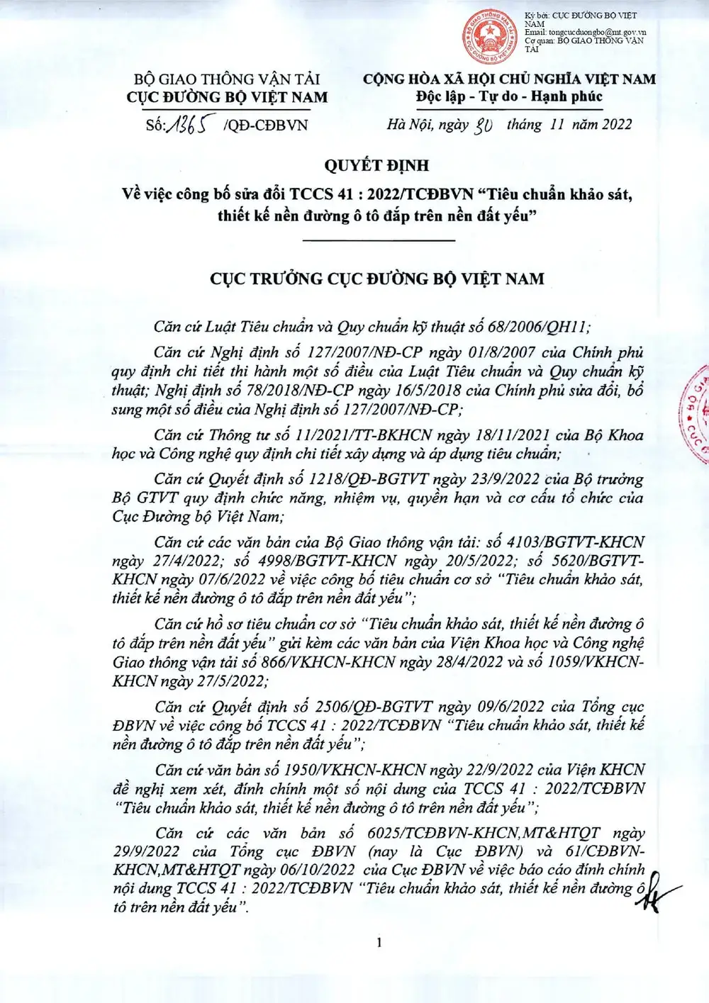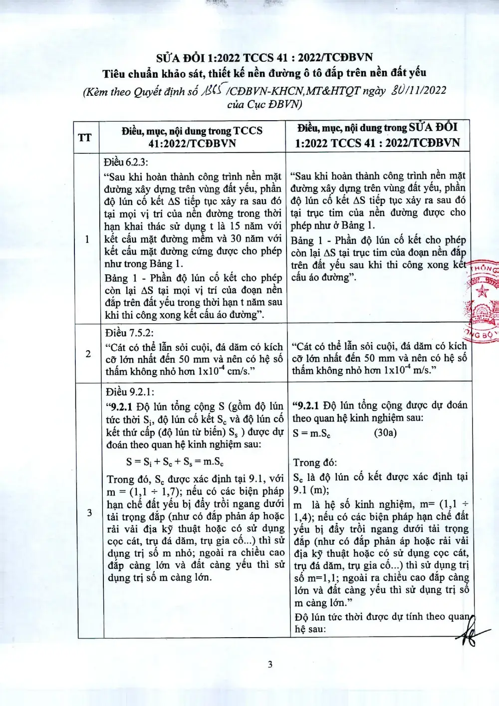 Sau khi TCCS 41:2022 được công bố, Bộ Giao thông Vận tải đã ban hành quyết định sửa đổi một số nội dung hết sức quan trọng trong tiêu chuẩn này. Những điều chỉnh này có thể ảnh hưởng trực tiếp đến công tác tính toán và thiết kế công trình trên nền đất yếu. Hãy cùng tìm hiểu kỹ để đảm bảo áp dụng đúng, tránh sai sót trong thực tế triển khai.