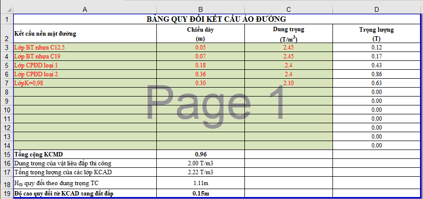 🔸Nhập thông số kết cấu áo đường
