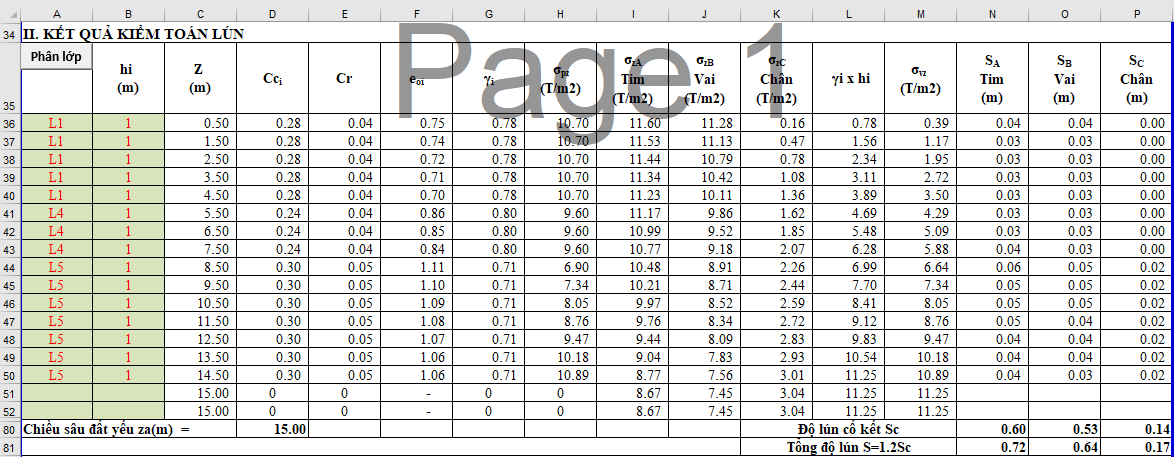 Sau khi đã xác định và tính toán độ lún cho từng lớp đất: